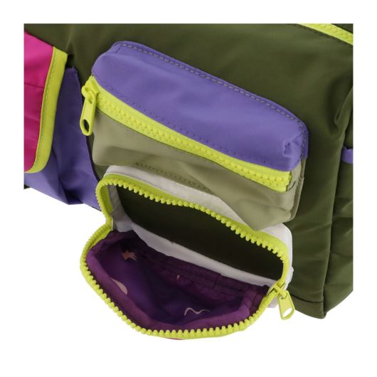 落ち着いたオリーブに、ピンクやイエローのアクセント。レトロなムードと都会的な抜け感をあわせ持つ、デイリーに使いやすいカラー。