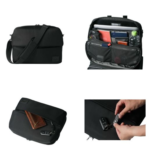 前面:ファスナーポケット×1(内側:フリーポケット×2、キーリール×1、取り外し可)