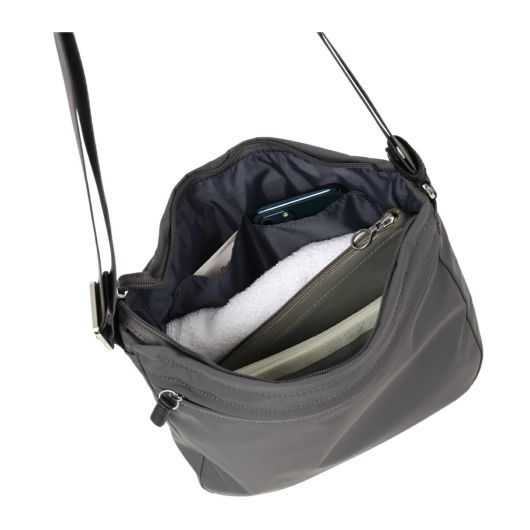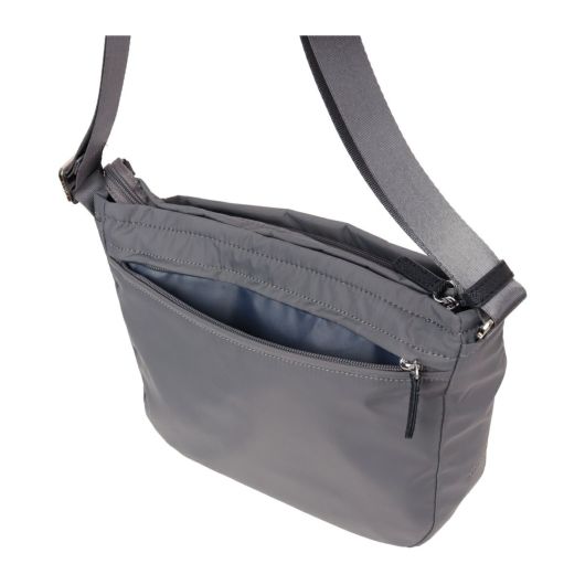 定番的な人気のシリーズのショルダーバッグに、新サイズが登場!メインの生地はレインコート等にも使用されるナイロンタフタを使用しており、高密度の撥水ナイロンタフタにメリヤスを貼り手触りの良い柔らかい質感を表現しました。ポリエステルと比べて耐衝撃性に優れ、裂けづらくしわになりにくい素材です。軽量で使いやすくデイリーからトラベルまでさまざまなシーンに対応します。仕切りポケットも多く荷物の仕分けがしやすくなっているのもポイント。
