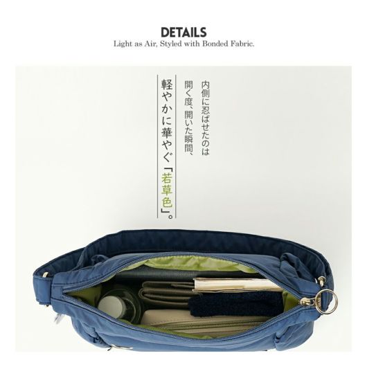 北欧ブランドmoz(モズ)、軽量で毎日使いたい「ZLQKシリーズ」。ふんわりとしたボンディング生地が生み出すやさしい丸みのあるシルエット。ナチュラルで上品な佇まいは、毎日のコーデにほんのりフェミニン な彩りを添えます。見た目も手ざわりもやさしい、心までやわらぐショルダーバッグです。