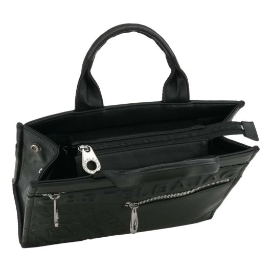 まるで革のような合成皮革にロゴを大きくもり上げてブランド感をだした、シンプルながらブランド表現は120%のシリーズです。