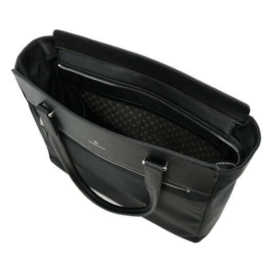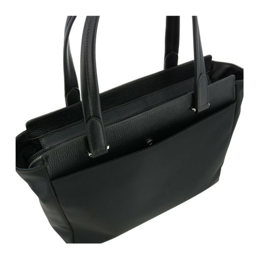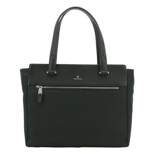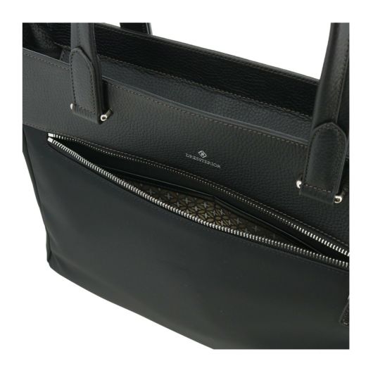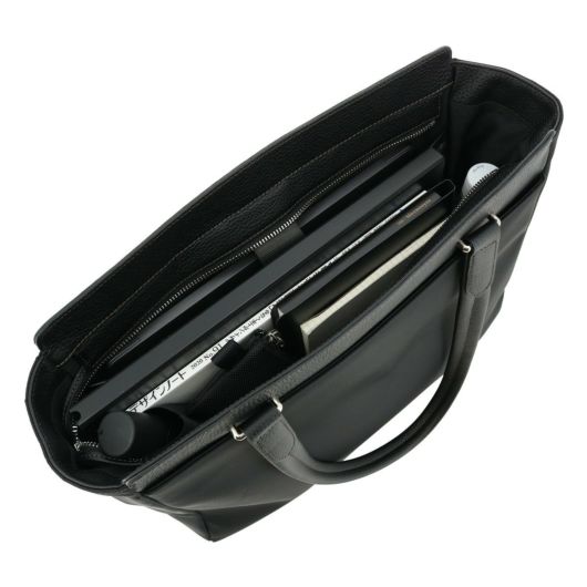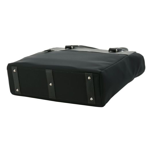 東レのエコユースを使用した高品質なリサイクルナイロン素材を使用。上品な光沢感が魅力の生地にレザーを使用したジェンダーレスなアイテムです。A4サイズを楽々収納でき、カジュアルなシーンにはもちろん、ビジネスシーンでも活躍します。13.3インチノートパソコン収納にも対応。耐久性と収納力を兼ね備えたトートバッグです。