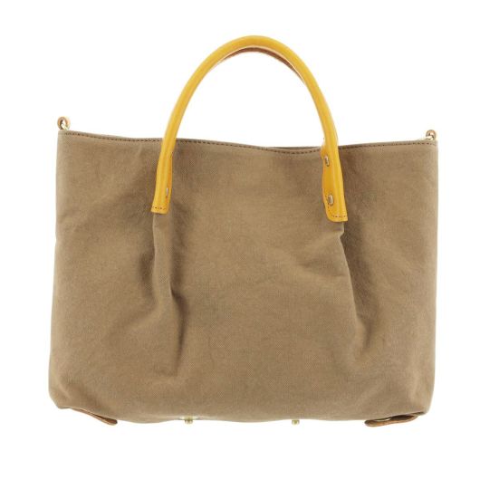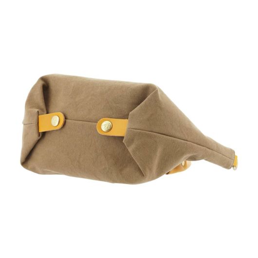 エテルノとはイタリア語で「永遠」という意味。シンプルなシルエットで日常使いにぴったりで、流行に流されず、長く使用できるシリーズです。底角を折ることによって、バルーン型にして使用することもできる2wayトートです。本体生地はチェックと無地の2パターン。チェックは3色展開。無地は、本体色がベージュ1色で、付属の革が7色でカラフルに展開しています。