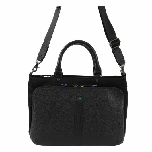 レザーとナイロンを組み合わせたスタイリッシュなデザインが特徴の、ランバンオンブルーのビジネスカジュアルドライビングトート。本体素材は、弱撥水加工を施した牛革とナイロンを使用しております。またショルダーベルトが搭載し、トートバッグとしてもショルダーバッグとしても使える2WAY仕様です。カラーは落ち着いた色味を選び、ビジネスシーンにもピッタリです。ON・OFFどちらのスタイルにもマッチするため、日常の様々なシーンでご利用いただけます。