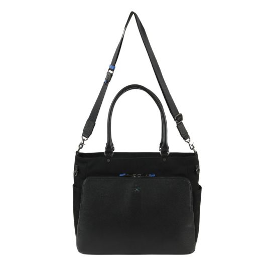 レザーとナイロンを組み合わせたスタイリッシュなデザインが特徴の、ランバンオンブルーのA4サイズ横型のビジネスカジュアルトートバッグ。本体素材は、弱撥水加工を施した牛革とナイロンを使用しております。またショルダーベルトが搭載し、トートバッグとしてもショルダーバッグとしても使える2WAY仕様です。カラーは落ち着いた色味を選び、ビジネスシーンにもピッタリです。ON・OFFどちらのスタイルにもマッチするため、日常の様々なシーンでご利用いただけます。
