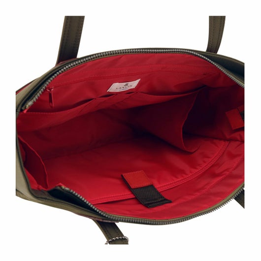 また、ランバンオンブルーのコンセプトである異素材ミックスは、撥水性のあるナイロン生地とキズや擦れに強い付属革で表現されています。