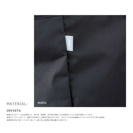 柔らかな質感としわになりにくい特性が特徴のナイロンツイル素材を使用しています。