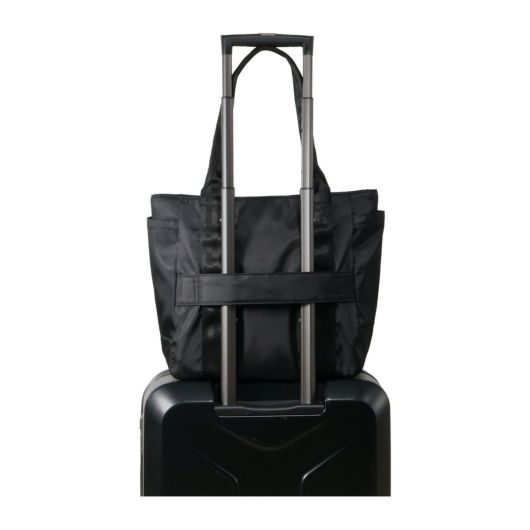 ビジネスシーンにもマッチするBLACK x GREYのロゴネームは本企画用にオリジナルデザインとなります。キャリーケースにセットできるスマートスリーブ仕様でキャリーケース使用時にも快適に使用可能です。底ビョウ(5点)を採用し、自立性を高めています。