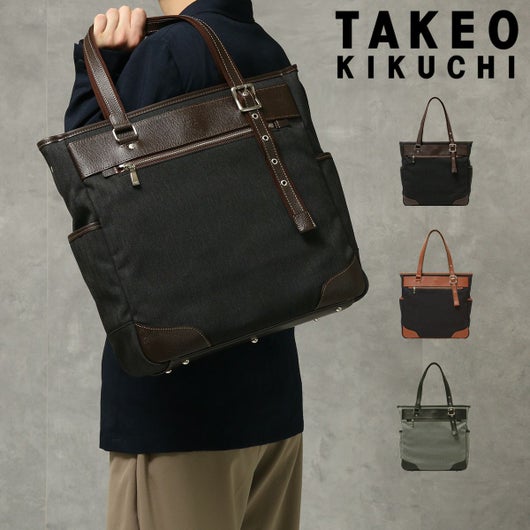 大人な雰囲気の杢調ヘリンボーン生地を使用した、TAKEO KIKUCHIのカジュアルB4トートバッグ。