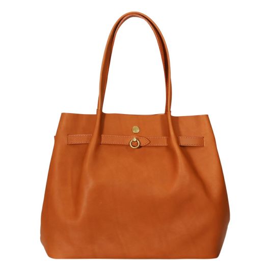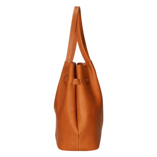 トートバッグは、持ち手を本体で挟むように取り付けられているため、自然とドレープが生まれ上品なシルエットになります