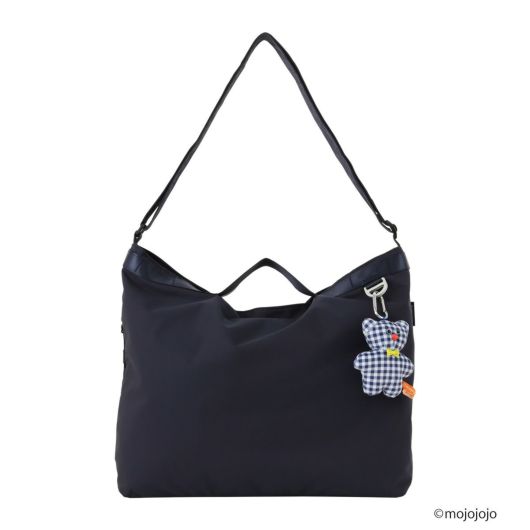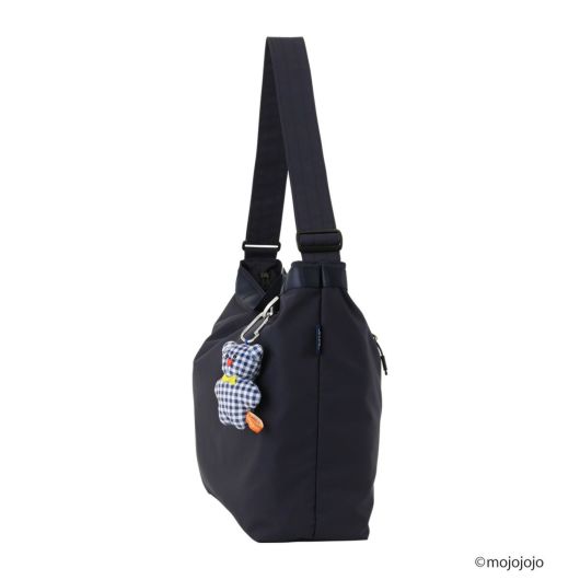 手持ちでも斜め掛けでも使える2WAY仕様で、スタイリングやシーンに合わせて持ち方をアレンジ可能。汚れや水を弾く撥水素材を使用しており、悪天候の日も安心です。チャームを付け替えて楽しめるよう、バッグ本体はシンプルなデザインに仕上げています。