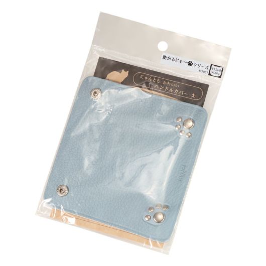 大サイズは持ち手を2本まとめて使うのに便利です。柔らかい革でエコバッグ等で重たい荷物を持つ時に手に食い込んで痛くなってしまうのを軽減してくれます。また、お気に入りのバッグの持ち手に付けて汚れ防止にしたり、アクセサリー感覚で差し色にしてもかわいいです。肉球ボタンの周りはネコの手のシルエットになっています♪