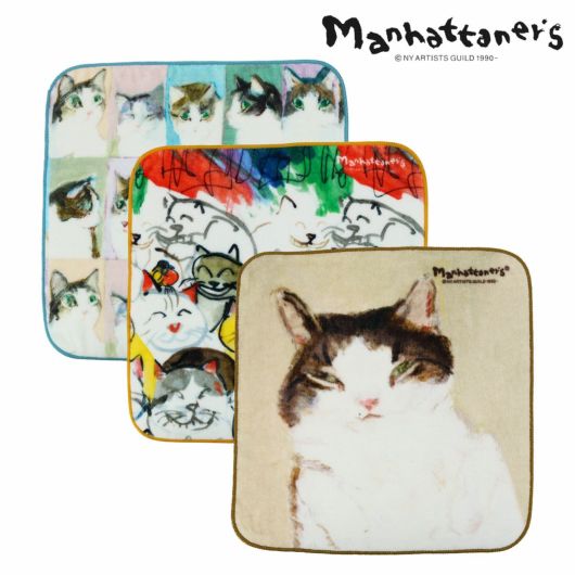 猫好きにはたまらないマンハッタナーズのタオルハンカチ。