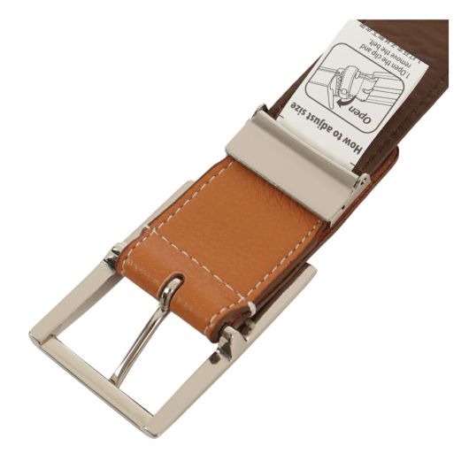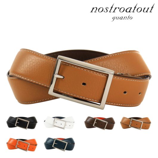 バックルのピン先をストレートにすることで、バックルを180度回転させて帯を裏表両方使えるリバーシブルベルトとしてお使いいただけます。ステッチは表革には生成りスッキリした印象に、裏革には共色のステッチを施しカジュアルな印象に仕上げています。その日のコーディネートに併せて瞬時に色を合わせらることがポイントです。