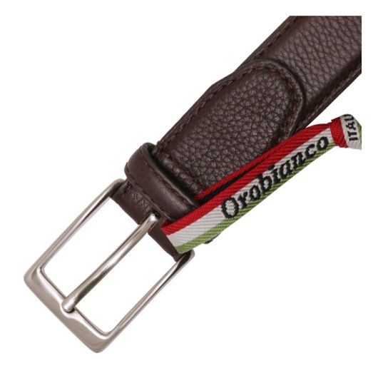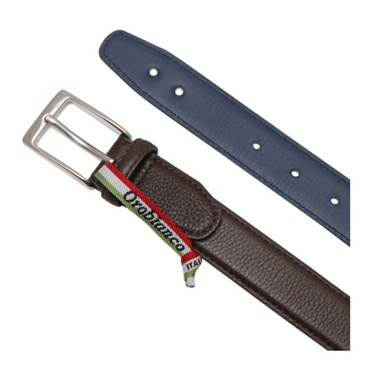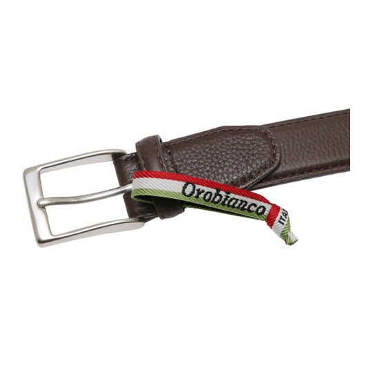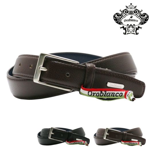 オロビアンコのメタルブランドロゴを帯剣先部に配したドレスベルト