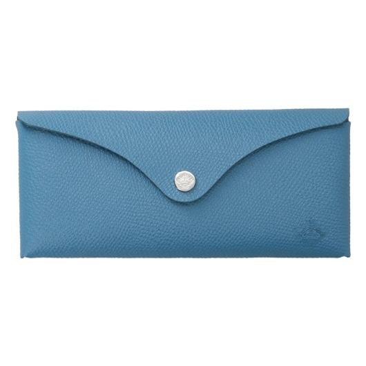 一枚の革を折り込んで組み立てたシンプルなメガネケース、縫製をしていないので糸を使っていません。