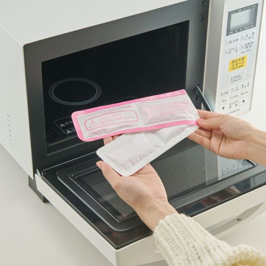 仕様 |使用方法:本品を専用布カバーから取り出し、V字型になるよう2つ折りにします。家庭用電子レンジ(500W/600W)にて、加熱時間を必ず守って温めてください。