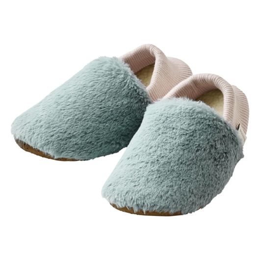 電子レンジで温めたジェルパックをポケットに入れて使用するスリッパです。心地よい温度で足元をじんわり温めます。