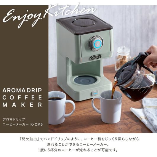 K-CM5 Toffy プレミアム|ドリップ コーヒー 珈琲 保温 間欠抽出 5杯 キッチン家電 シンプル レトロ おしゃれ かわいい LADONNA ラドンナ 1年保証