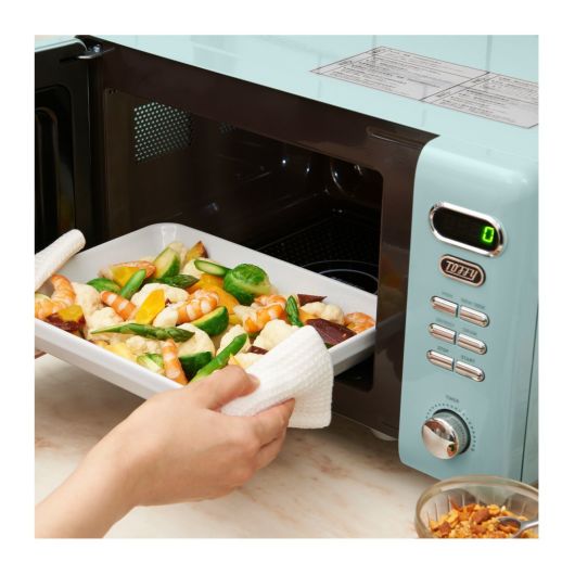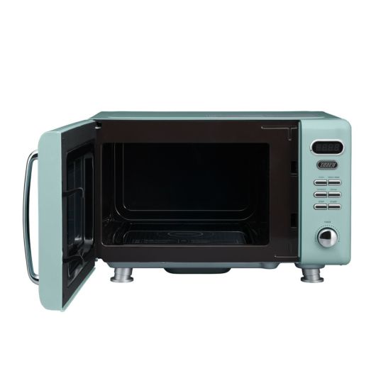 シンプル操作でカンタン調節!フラットな庫内で、掃除もしやすいレトロスタイルの電子レンジです。