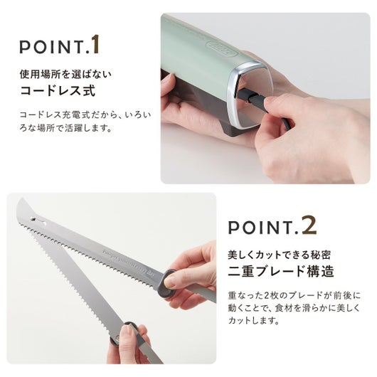 K-EK1 Toffy|電動マルチナイフ コードレス パン切り包丁 チャイルドロック 安全 エレクトリックナイフ USB おしゃれ シンプル 6ヶ月保証