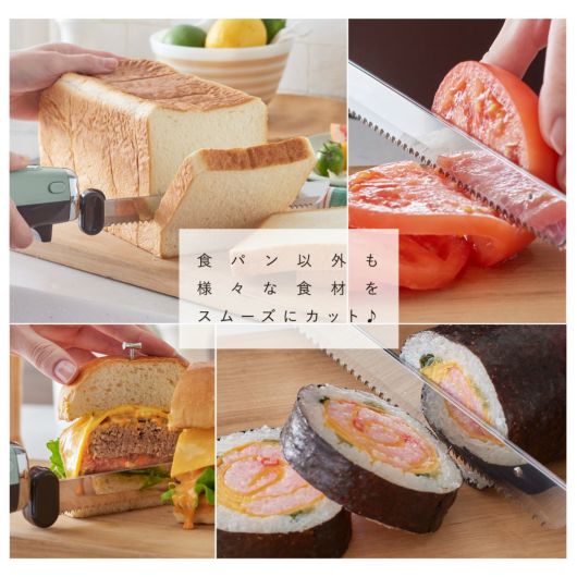 包丁では切りにくい焼きたてのふわふわ食パンや硬いフランスパンまで、刃をあてるだけでラクラクカット♪厚いサンドイッチやホールケーキも「映える」、きれいな断面が作れます。