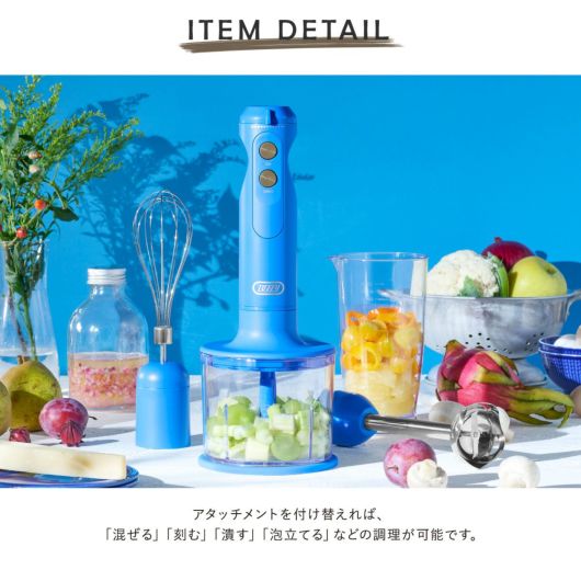 下ごしらえから仕上げまで、1台でこなせる多機能なハンドブレンダー。アタッチメントを付け替えれば、「混ぜる」「刻む」「潰す」「泡立てる」などの調理が可能です。さまざまなレシピで活躍し、料理のレパートリーが広がります♪