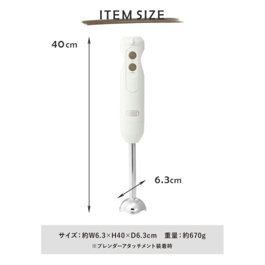 サイズ|約W6.3×H40×D6.3cm(ブレンダーアタッチメント装着時)