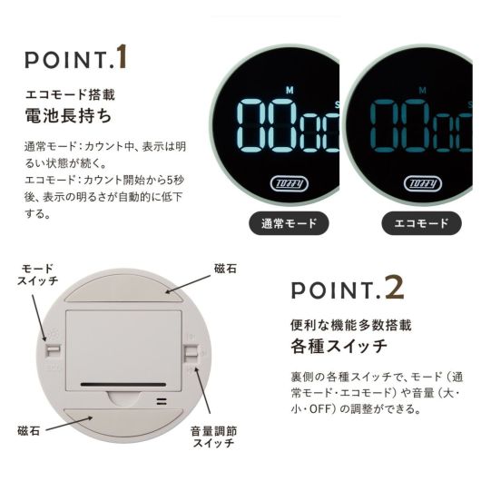 K-KU22 Toffy|大画面ダイヤルタイマー 乾電池式 アラーム 磁石 マグネット ストップウォッチ キッチン家電 レトロ おしゃれ かわいい 6ヶ月保証