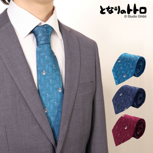 トトロのネクタイは遊び心のあるデザインが支持されています。胸元のアクセントになるので、いつものスーツスタイルに可愛さをプラスしたい時にピッタリなネクタイです。