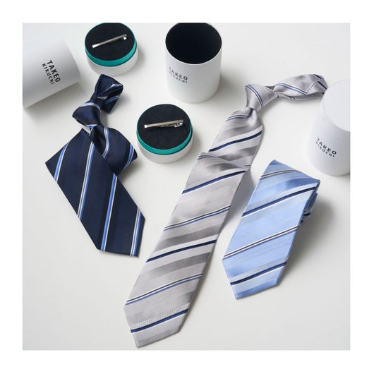 端正なストライプネクタイと、シンプルで洗練されたタイバー(ネクタイピン)を、スタイリッシュなシリンダー型の専用BOXに詰め合わせた限定セットです。