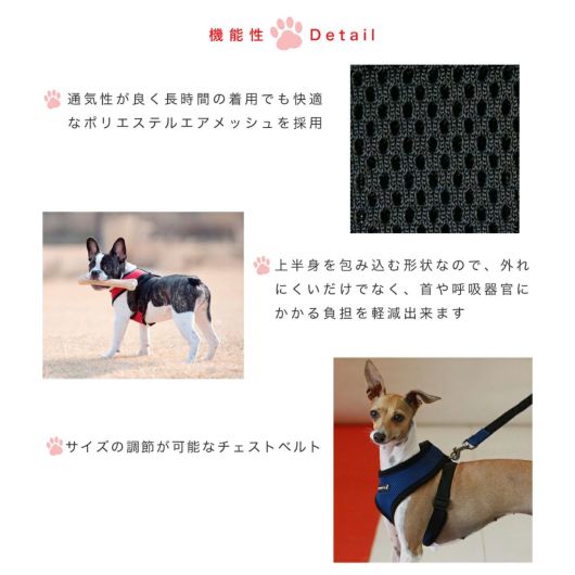 世界30ヶ国以上で愛されているPUPPIA ソフトハーネス。メッシュ素材で通気性がありワンちゃんの負担を軽減するように設計された機能型ハーネスです。従来の首輪が背中の筋肉と首の骨に大きな負担をかけるという点に着目し、その負担を胸と胴体に分離させるようにデザインされています。