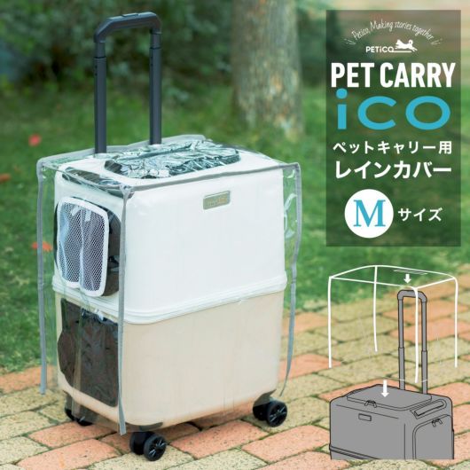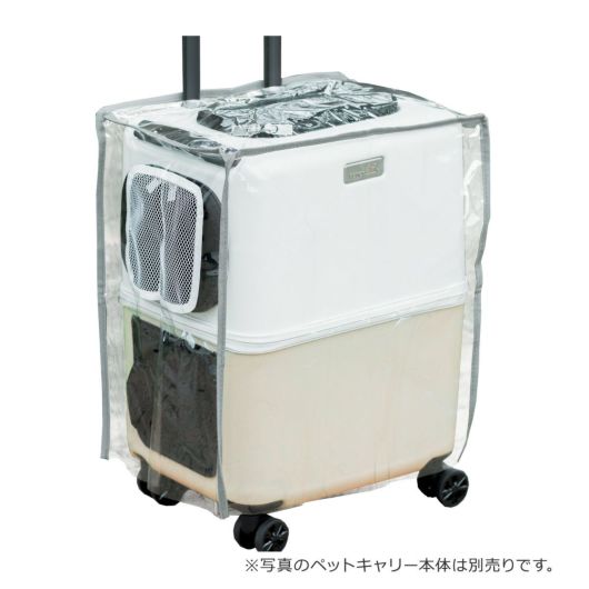 雨の日のお出かけや突然の雨にも、被せるだけのカンタン装着。寒い日の防寒対策としてもピッタリの同ブランド「PETico(ペチコ)」ペットキャリー(Mサイズ)用のレインカバーです。