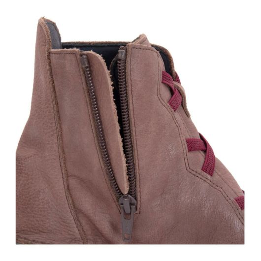 とにかく軽い!アウトソールは超軽量三層構造。アンクル丈のゴム編み上げタイプのショートブーツ。配色がポイントで内側側面にファスナーがついているので脱ぎ履きしやすいデザインです。