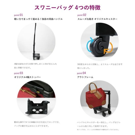 SWANY×トランジットラウンジコラボ企画。前面部の合皮のフラップポケットと配色ステッチがデザインポイント。コロンとした可愛らしいフォルムですが脇部分のホックを外すとトート型としてもお使いいただけます。タウンにもお出かけにもお使いいただけるシリーズです。