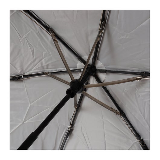 生地が3枚のサンドイッチ構造になっており、間に挟まれているアルミシートが熱を滞留させず、隙間の空気層が熱を逃がす効果があります。ハニカム柄アルミシートの遮光層が光と紫外線をブロック。外側生地のはっ水加工で雨にも安心。風を受け流す耐風機能つき。