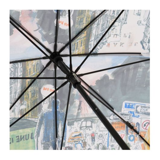 作品がダイナミックに描かれたインパクトのある長傘です。個別に8枚プリントしたものをつなぎ合わせています。