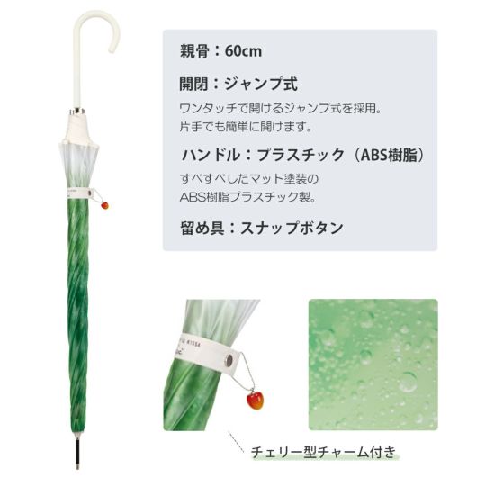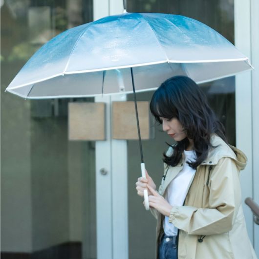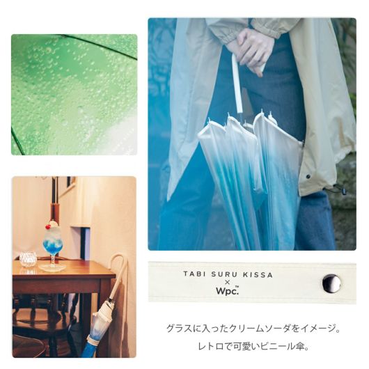 雨宿りに訪れた喫茶店できらきら輝くクリームソーダに出会い、憂鬱な気分が晴れていく。日本全国を巡り、旅をしながらオリジナルのクリームソーダをつくる「旅する喫茶」。思わず見惚れてしまうような透明感のある写真を傘のデザインに落とし込み、その世界観を表現した「旅する喫茶」とのコラボレーション。