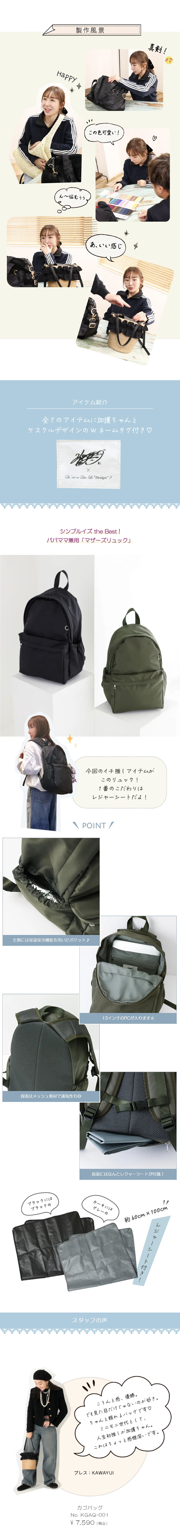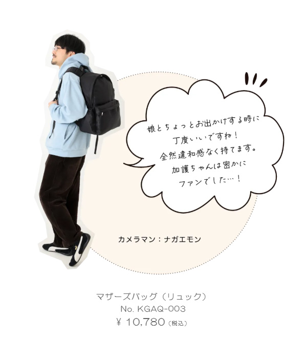 『今回のバッグは、毎日の中で自然に手に取りたくなるような、軽やかさを大切にしました。ママとしても、1人の女性としても、「これがちょうどいい」と思えるバッグになっていたら嬉しいです。』