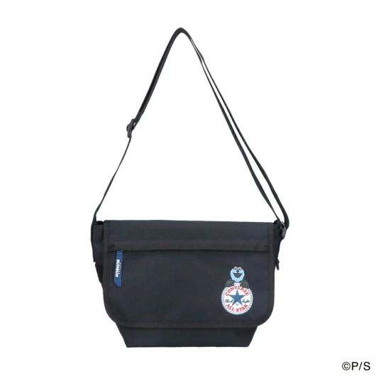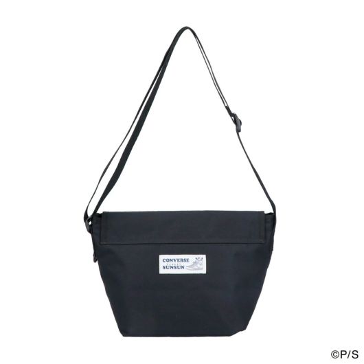 コンバースのアンクルパッチロゴから覗くスンスンが可愛いスペシャルアートの刺繍が印象的なデザインのミニメッセンジャーバッグです。本体背面にはコンバースオールスターに入って手を振るスンスンのイラスト織りネーム、フロントポケットに表裏でそれぞれのロゴが入ったファスナー引手テープ、本体内側のコラボアートプリントネームなど、普段使いしやすいシンプルで控えめなデザインながら、特別コラボアートが随所に施された特別感ある仕上がりになっています。本体生地は絶妙な光沢感の軽くて丈夫なポリエステルキャンバス素材を採用。使い勝手の良いベルクロ仕様のフラップタイプなので、物の出し入れをスムーズに行えます。また、見た目以上の収納力で、財布やポーチ等の必需品はもちろん、500mlのペットボトルやスリムタイプのお弁当箱などもすっきりと収納可能です。フラップ外側とフラップ内側にそれぞれファスナーポケットがあり、本体内側にも2つのオープンポケットとファスナーポケットが一つついているので、細かいものを整理して収納することが出来ます。大きすぎず小さすぎず男女兼用でお使いいただけるちょうど良いサイズ感で、普段のちょっとしたお出かけから、レジャーやトラベルシーンまで様々なシチュエーションでご使用頂けます。