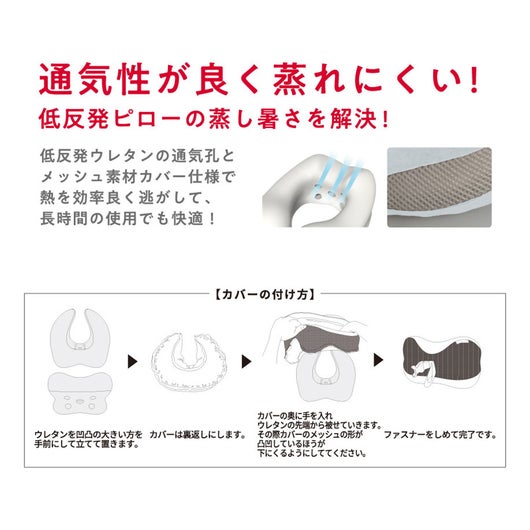 カバーのファスナーの開口部が従来品よりも広くなり、中の低反発ウレタンクッションの出し入れが簡単になりました。