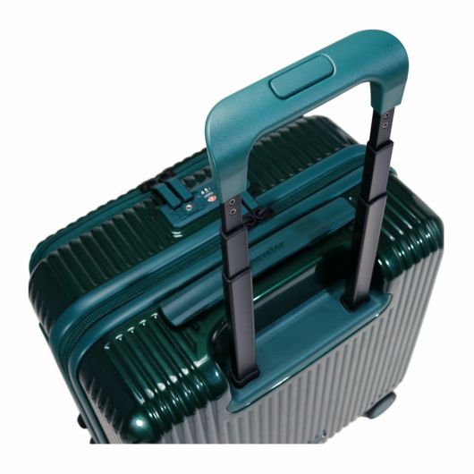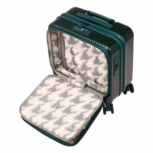 フロントポケット、TSAダブルダイヤルロック、ブレーキシステム、消音双輪キャスター、ボトムハンドルと多機能でありながらスタイリッシュな機内持込サイズケースです。3ルーム収納方式で、ビジネスでもプライベートでも用途に合わせた収納が可能。また、フロントポケットはワイドオープン仕様で、省スペースで収納も可能です。