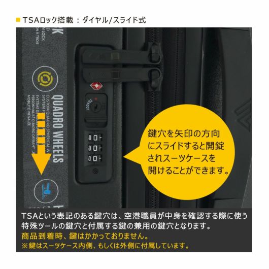荷物が多いなら、ポリカーボネート製シェル成形のクアドロ28がおすすめです。TSA(米国運輸保安局)承認のジッパーロックと YKK?の Fuzion?ジッパーを搭載しているので、防犯性が高く、信頼がおけるうえ、独自のクアドロ球体ホイールによって、究極の4輪機動力を実現しています。