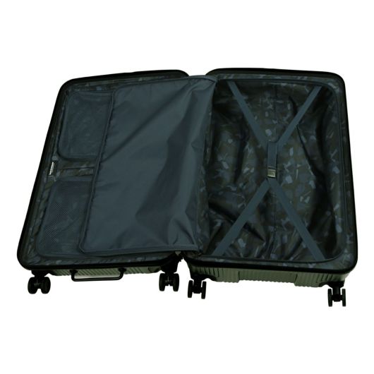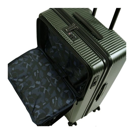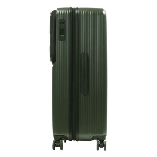 多機能かつスタイリッシュなラージサイズケース。トップオープンポケットは移動中に素早く荷物の出し入れが可能。トップオープンポケットの奥側に、フレキシブル収納ポケットがあり、大きい荷物も移動時に収納・取り出しが可能。プライベートやビジネス、また数泊の家族旅行にも使える機能的なスーツケースです。