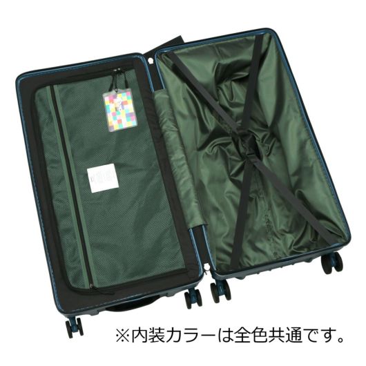 TSAダイヤルロック、消音双輪キャスター(マルチサイズタイヤ)、ボトムハンドルと機能的でスタイリッシュな機内持込サイズです。2輪で引いたときに安定走行ができる様、タイヤサイズが違う仕様となっています。