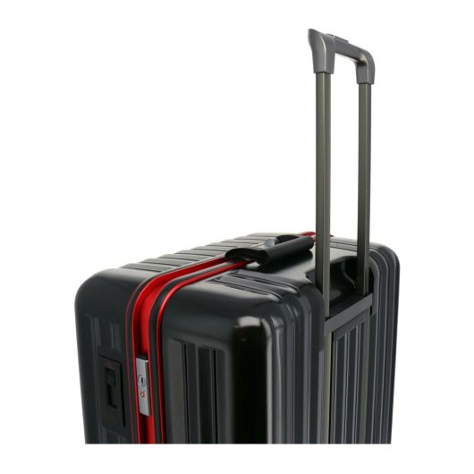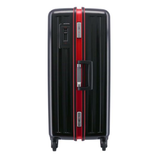 フレームタイプで、ブレーキ式消音キャスター機能付き。ブレーキ機能は電車やバスの利用時に誰もが感じた事のあるストレスを軽減してくれます。外付けキャリーバーを採用することで、容量もアップ。多くの荷物を入れて移動するのに便利なスーツケースです。