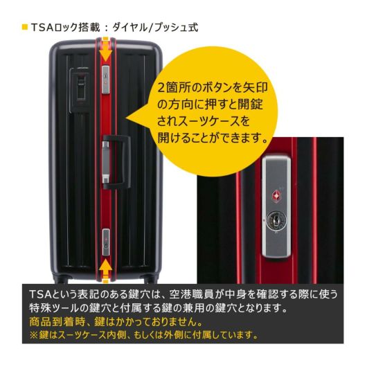 備考 |※無料受託預入サイズです。ご利用条件は各航空会社によりことなりますので、事前のご確認をお勧め致します。※ダイヤルロック仕様の為、カギは付属しません。