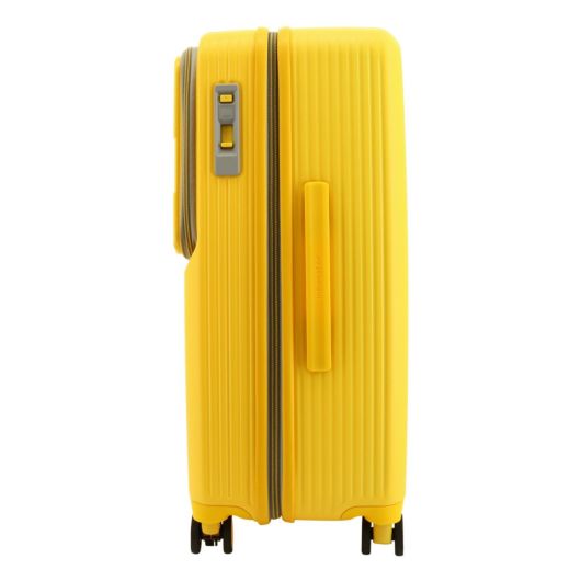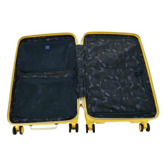 多機能 かつ スタイリッシュなミドルサイズケース。トップオープンポケットは移動中に素早く荷物の出し入れが可能。トップオープンポケットの奥側に、フレキシブル収納ポケットがあり、大きい荷物も移動時に収納・取り出しが可能。プライベートやビジネス、また数泊の家族旅行にも使える機能的なスーツケースです。