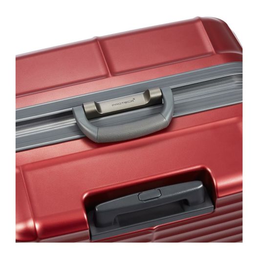 PROTECA Stratum|軽量・硬質なマグネシウム合金フレームと「ストラタム」=「層」の様に連なる水平リブが、スーツケースに必要な強度を確保します。ロックにはTSAダイヤル錠を採用。