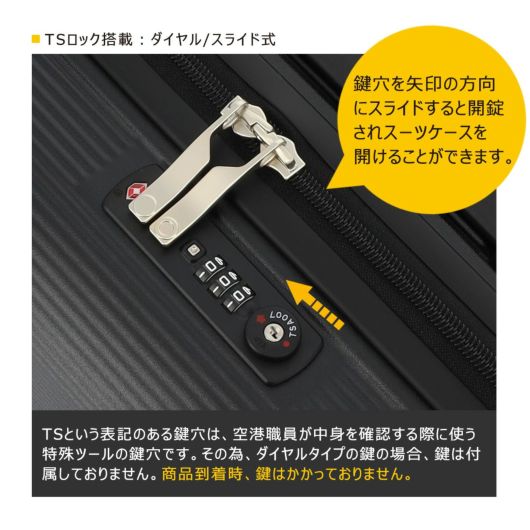 TSAロック(TSロック)|アメリカ(ハワイ等含む)渡航の際、TSA公認の製品に限り鍵をかけて預ける事ができます。この製品のTSAロックは米国連邦航空省運輸保安局が認定しTRAVELSENTRY社が管理・運営しているシステムです。